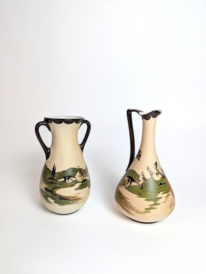 VERSEUSE à haut col et VASE balustre à anses, en grès émaillé, à décor de danseurs basques.