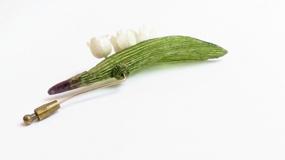 ÉPINGLE en résine en forme de fleur avec strass au centre.