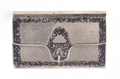 BOÎTE A CIGARETTES en forme de cartouchière en argent (84 zolotniks - 875) à décor niellé de frises de rinceaux et palais sous la base.
