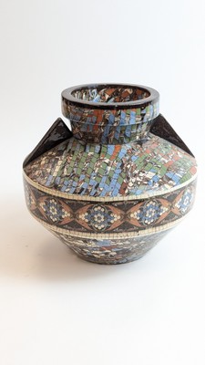 VASE pansu à deux anses et à col ourelé en céramique émaillée dite terre mêlée à l'imitation de la mosaïque.