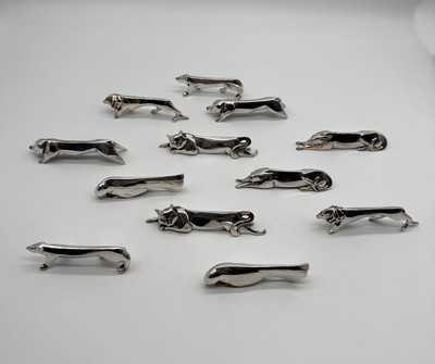DOUZE PORTE-COUTEAUX en métal argenté figurant six animaux stylisés.