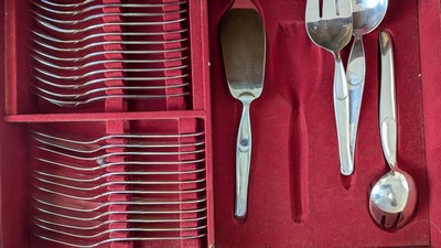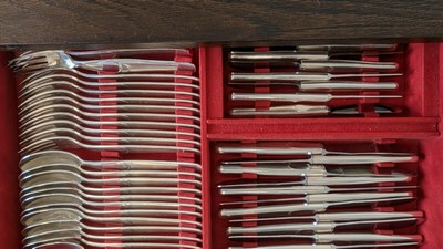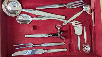 MÉNAGERE en métal argenté à modèle style moderniste, comprenant 136 pièces, soit :