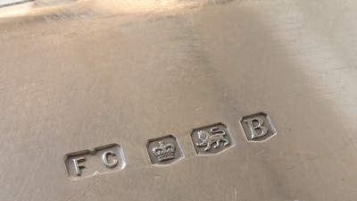CENTRE DE TABLE de forme carrée à pans coupés en argent (925), à décor de godrons dans les coins et reposant sur quatre petits pieds en enroulements.