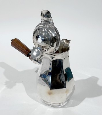 CHOCOLATIÈRE en argent (950) de forme balustre à pans, couvercle souligné de godrons, frétel articulée, bec verseur souligné de coquille, anse latérale en bois tourné.