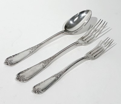 PARTIE DE MENAGERE en argent (950) modèle Marly comprenant : 12 grands couverts et 12 fourchettes à entremet.