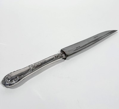 COUVERTS A DÉCOUPER trois pièces à manche en argent fourré (950), modèle marly.