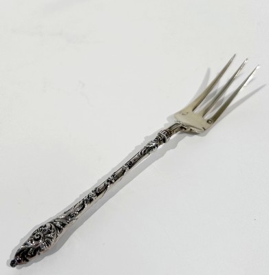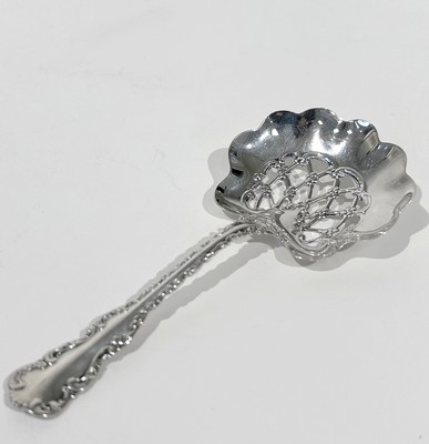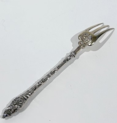 PAIRE DE PETITES CUILLERES à saupoudrer en argent probablement américain, datées 1891, et une petite fourchette en argent et vermeil (950).