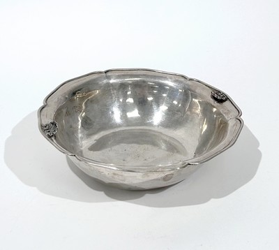 ÉCUELLE en argent (950) à bords contournés à décor en appliques de deux coquilles Saint-Jacques.