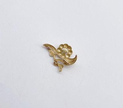 BROCHE FLEUR en or (750) poli et amati sertie d'une perle bouton.