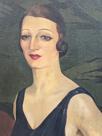 Portrait présumé de l'actrice Délia COL (1896-1987) sur fond de paysage japonisant, 1936